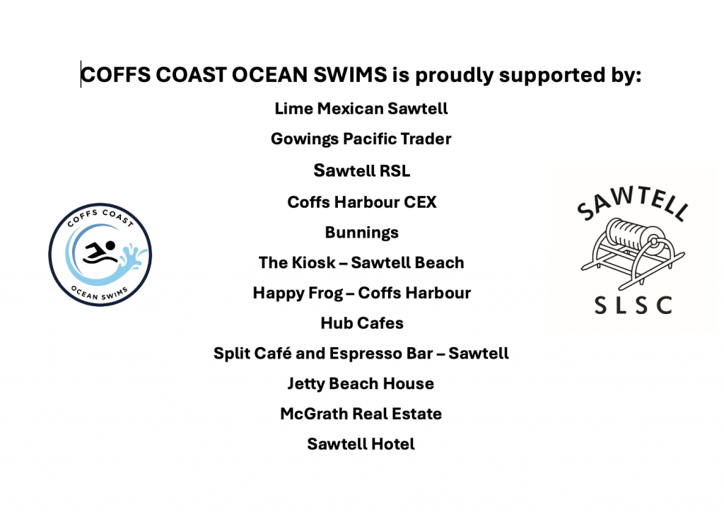 Sawtell SLSC great appreciates the support of all the above who go to make the Coffs Coast Ocean Swims the success it is.